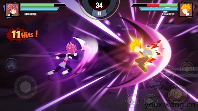 超级龙影格斗(Stickman Warriors),以热血格斗动漫《龙珠》为题材的火柴人动作格斗类手游。游戏通过简易的手绘风格,将动漫中的各种人物以火柴人形象活灵活现的展现出来,虽然人物的画风较为简单,但是打都起来的特效和震撼感可以一点都不含糊,各种技能效果也很高的致敬龙珠,让你能够体验到刺激无比的格斗乐趣!不仅如此,我们还可以在对战中体验到变身的快乐,只需蓄满气就能变身,例如变身超级赛亚人,开启自在极意功等等,体验起来非常的有意思!