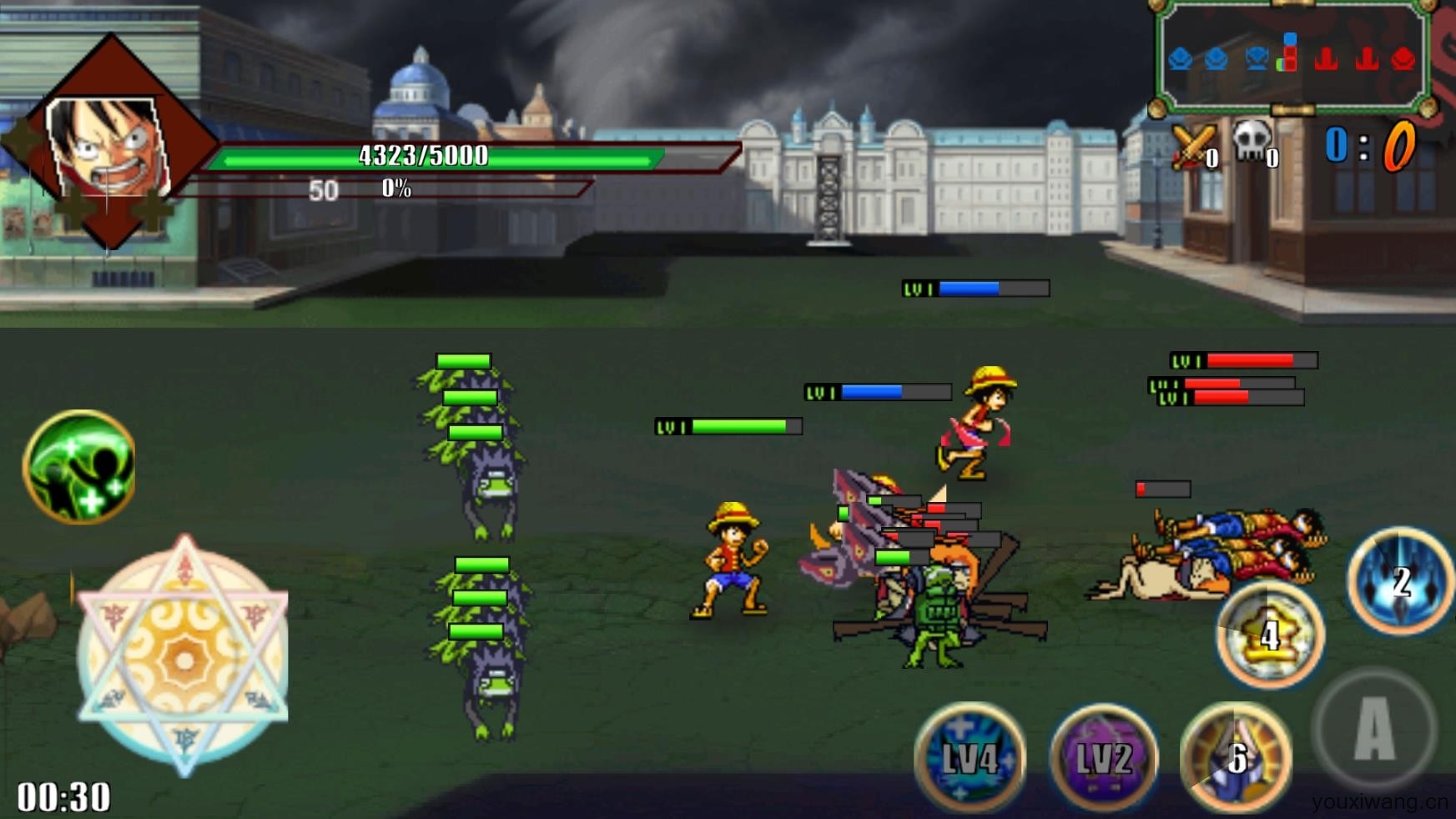 海贼王战记,是玩家根据火影战记制作的一个改版,将里面的角色更换成了海贼王里的角色。在海贼王战记里玩家可以选择自己喜欢的角色来进行战斗,通过使用不同的能力来击败对方英雄赢得胜利,游戏里有许多模式可以体验,选好自己喜欢的角色来体验全新的战斗乐趣吧。