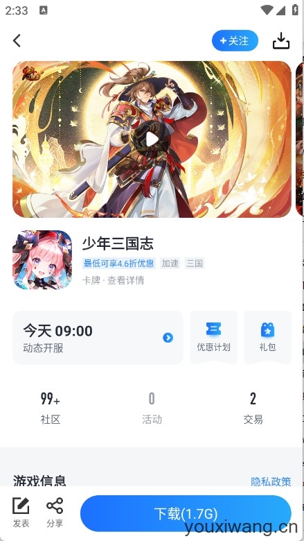 1、选择你要充值的游戏,进入游戏介绍界面,点击“优惠计划(优惠充值折扣+代金券)”。