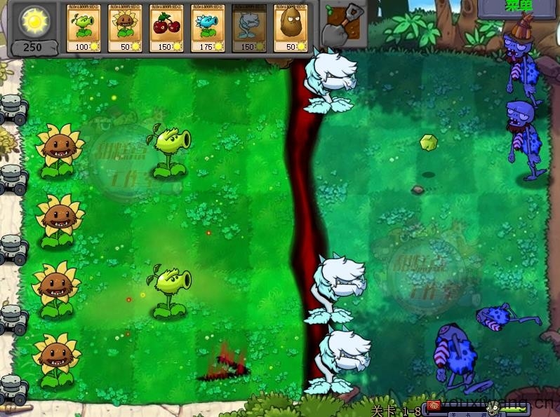 4、进入关卡后消耗阳光可以种植植物,击退僵尸就可以通关。
