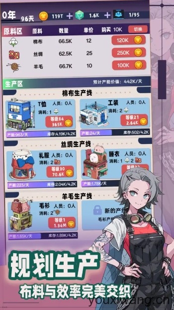 1、进入游戏后,首先来到制造部门,购买原料即可由工厂加工制作产品。