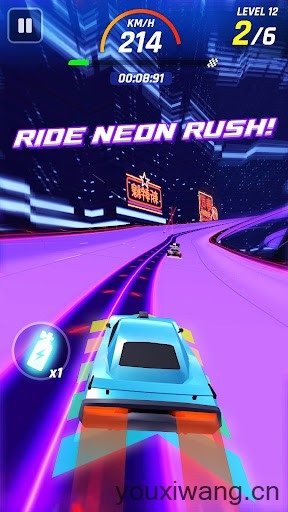 1、开始游戏后,点击屏幕即可为赛车加速,左右拖动即可进行移动。