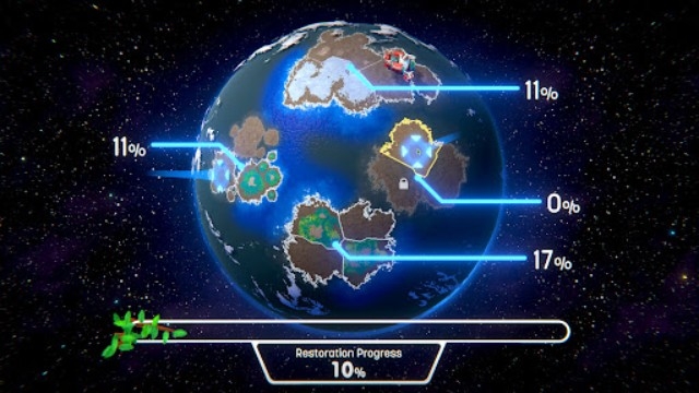 伊始之地(Terra Nil),题材十分独特有创意的一款模拟建设游戏,围绕着恢复生态环境这一核心展开,在游戏的过程中向大家传达保护环境的重要性!在游戏中,大家将会来到一片贫瘠的土地,这里遍地都是枯树、石头和荒地,几乎观察不到生命的痕迹,我们的任务就是建设起一系列设施来拯救这一切!建造风力发电机提供电能,建造毒素净化器将荒土转变为红土,再有灌溉机让土地长出绿植,或者是让水泵来灌溉河流等等,直到让这片土地恢复到生机勃勃的样子!