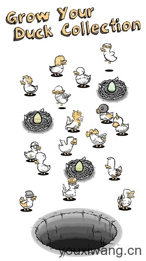 怪鸭世界(Clusterduck),一款画风可爱的魔性养成手游。我们将会进入到一个荒诞的鸭鸭世界当中,在这里需要你去孵化出各式各样的鸭群,开启一场充满了奇幻和惊喜的冒险收集之旅!这里的每一颗鸭蛋都有可能会孵化出令人意想不到的变异小鸭,挥舞武士刀的武士鸭、马蹄鸭身的飞天鸭等等,就像开盲盒一般惊喜不断!各种各样有意思的变异鸭子可以去收集,集齐图鉴享受养成乐趣!