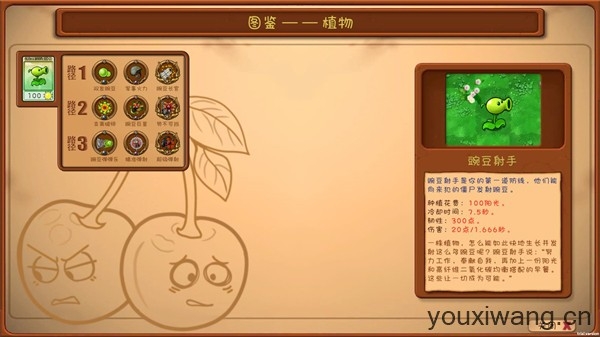 1、开局先种向日葵,然后那一路有僵尸就种豌豆,种下两排向日葵后有条件的可以给豌豆升一级,然后就可以强化向日葵了,升级选择第二个,可以加快向日葵的生产速度。
