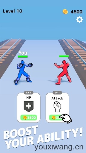 3、通过闯关我们能够收集非常多的金币,这些金币可以用来升级你的血量或者攻击,根据你的喜好自由的分配。