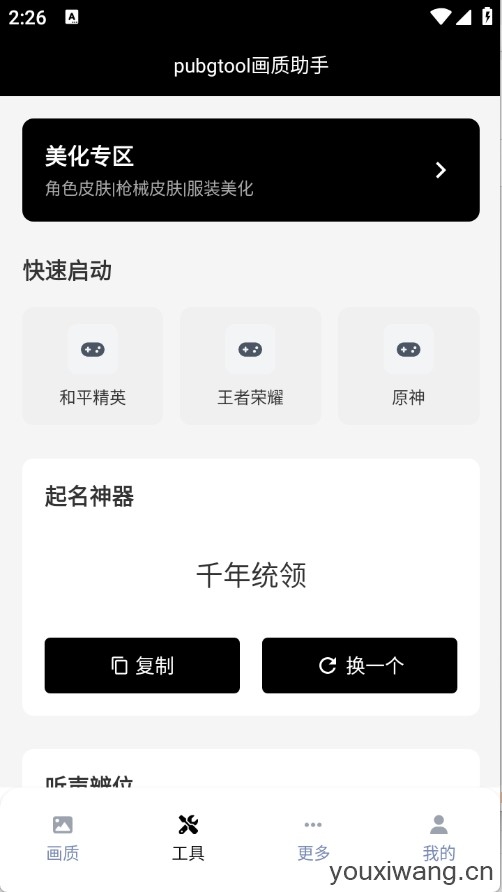 PUBGTool,免费的游戏画质提升助手,为用户提供了很多的修改功能,适用于多款游戏,帮助玩家拥有一个良好的视觉盛宴,可以根据玩家自身需求进行设置,满足不同玩家的需求,用户轻松来进行画质调整。