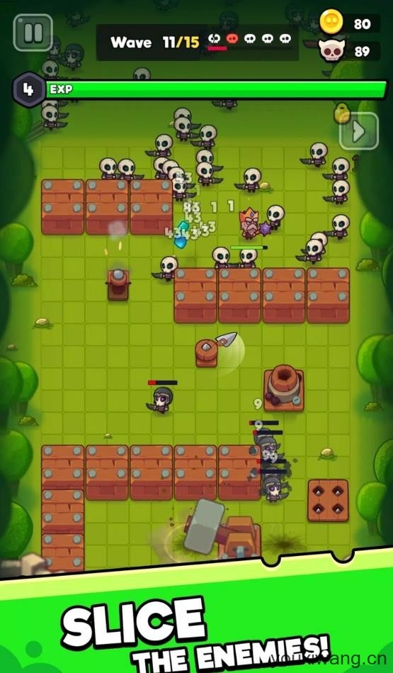 4、滑动屏幕可以控制角色移动,角色也会自动攻击进入范围的敌人。