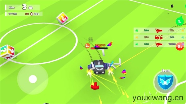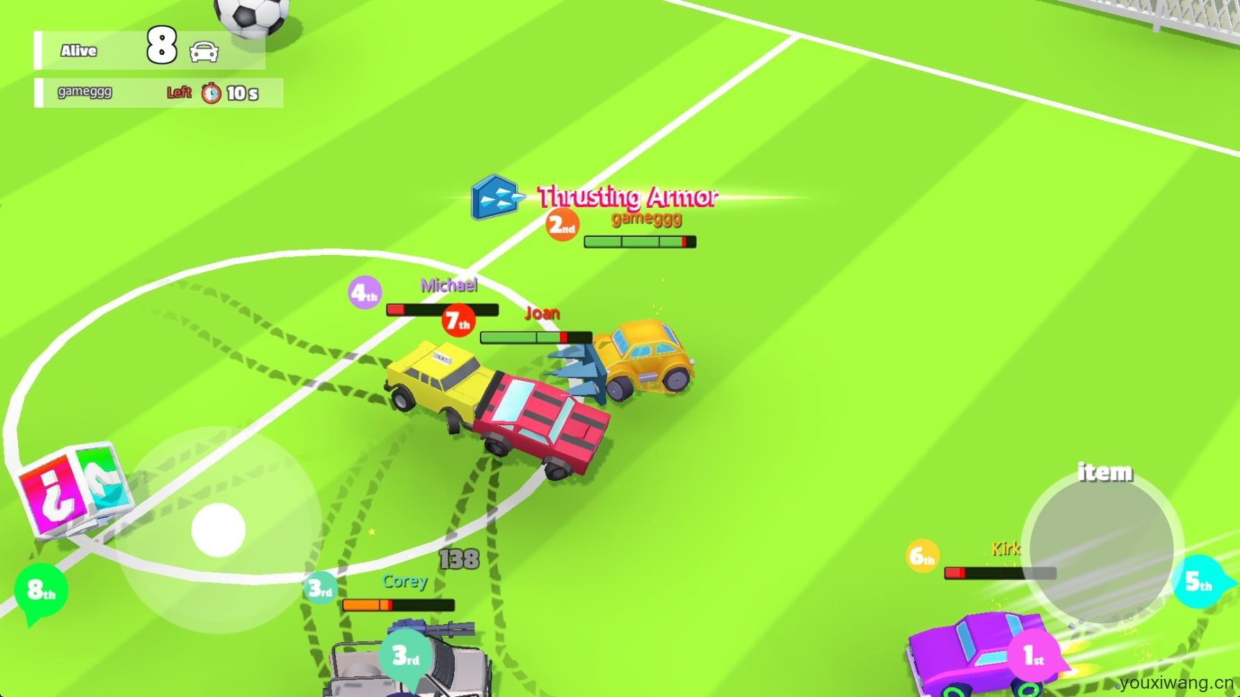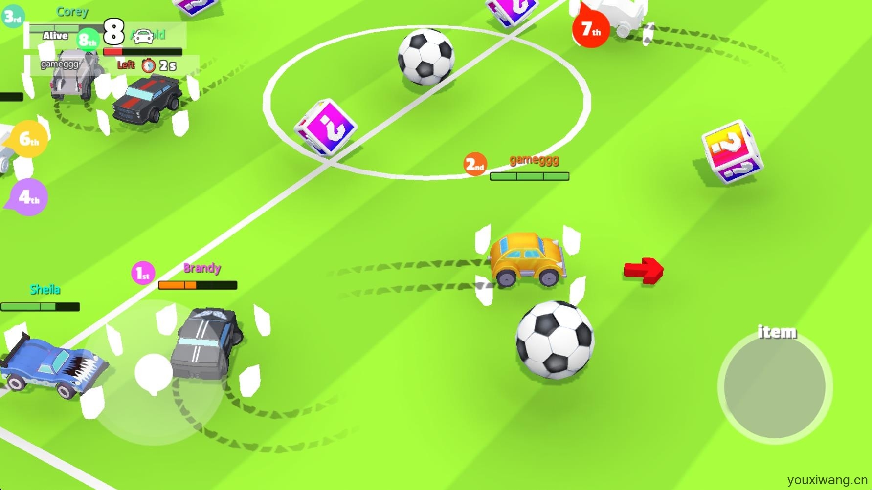 6、利用获得的道具击败场地里的其他玩家车辆就可以获得冠军。