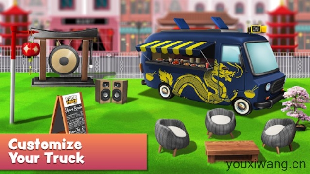 3、你可以消耗金币和钻石去定制自己的餐车外观,设置各种好看的装饰品,帮助你招揽更多客人!