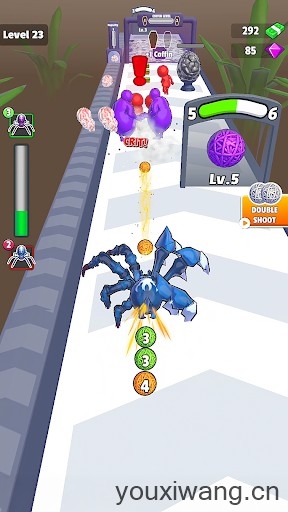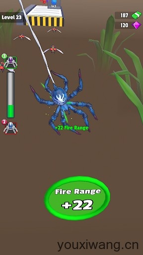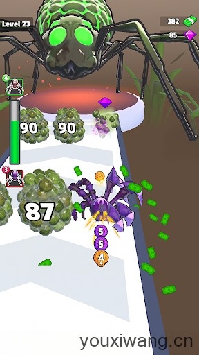 蜘蛛进化3D(Spider Evolution 3D),一款趣味十足的跑酷闯关类手游。游戏中以能够无限进化的蜘蛛为主题,我们需要操控蜘蛛一直前进,通过发射蛛丝来捕捉猎物,并收集一路上的各种道具奖励,直至抵达终点,穿越过重重障碍后就能够解锁全新的场景。除此之外,我们能够利用收集的道具来合成出更多强化蜘蛛的各个部位,例如蜘蛛腿、蜘蛛丝等等,让你的蜘蛛可以勇往直前,挑战更多关卡!