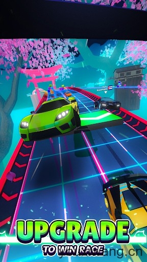 4、改装一定等级后就会解锁比赛,比赛中按住屏幕即可加速前进,左右滑动屏幕即可移动。