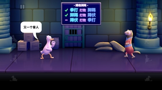 拳击鸭,英文名叫做Punch Kick Duck,是一款以鸭子等可爱动物为主题的冒险格斗类手游。游戏中分为拳、脚和蹲伏三种攻击方式,互相之间有着克制关系,玩家需要根据敌人的招式来合理出招,以此来不断击败对手获得分数,分数越高,最终的奖励就会越丰厚!不仅如此,游戏中还设计了丰富多样的动物角色可以去解锁使用,包括狗狗、兔子、猫咪等等,让你体验到非常魔性有趣的格斗乐趣!