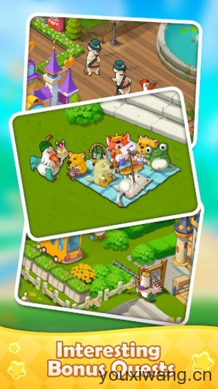 融合了冒险、合成、模拟经营等多种元素的休闲小游戏,整体的画面精致细腻,各种建筑和角色都采用了卡通画风,看上去温馨又可爱,让你的游玩体验会非常愉悦。玩家将会跟随任务的指引,一步步的去建设起各种魔幻的建筑,还原一个乌托邦的电影世界。