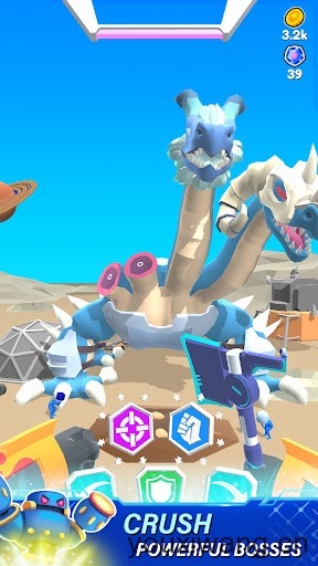 2、收集丰富多样的武器装备,自由的搭配起来,不断的强化自己的机器人,帮助你去击败更多的敌人。