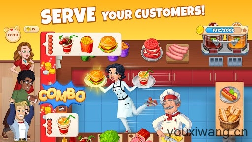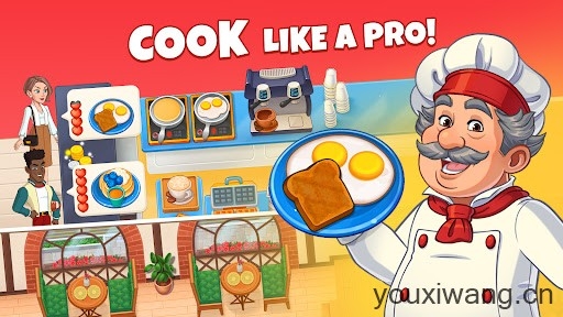 1、来自世界各地的数百道美味菜肴都能够交由你来烹饪,在餐厅中为客人们带来美味的食物,赚取更多的金币。