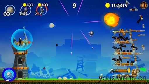 3、玩家还能够购买各种装备来武装自己的火柴人,并且添加弹炮、炸药等更多武器,战斗起来更畅快。