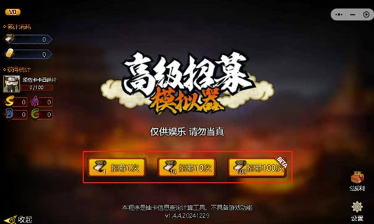 使用方法:打开上述链接地址,点击界面的“进入”即可开启抽卡!