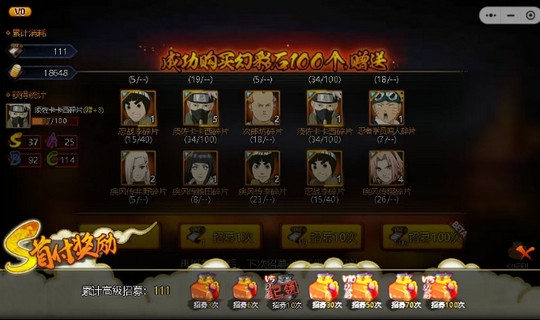4、无限制抽卡,没抽到需要的忍者也不要紧,接着抽卡即可。