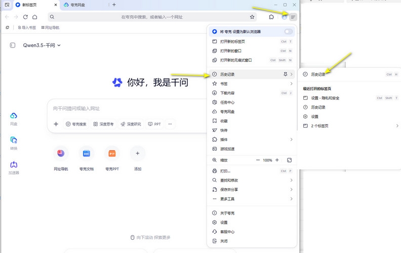 1.打开夸克网盘电脑版,并进入新标签页;