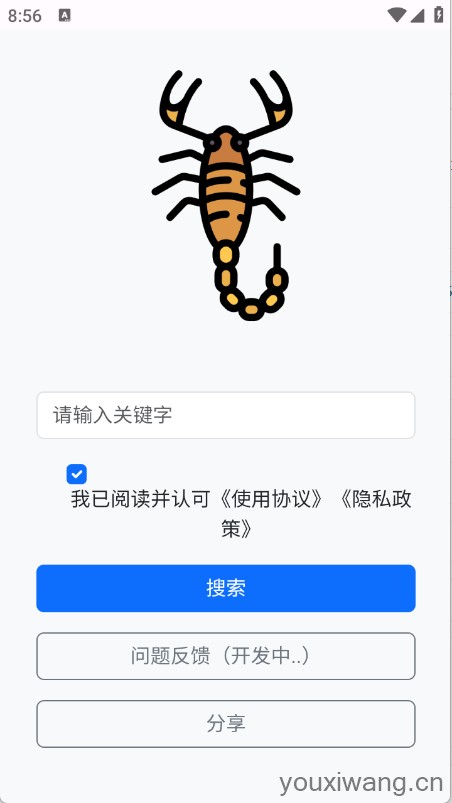 蝎子云,强大的资源搜索工具,可以搜索影视、小说以及漫画等资源,可以将搜索的链接进行复制、下载,随时都可以找到自己需要的资源内容,资源超级全面,想搜索的资源都可以在这里找到。