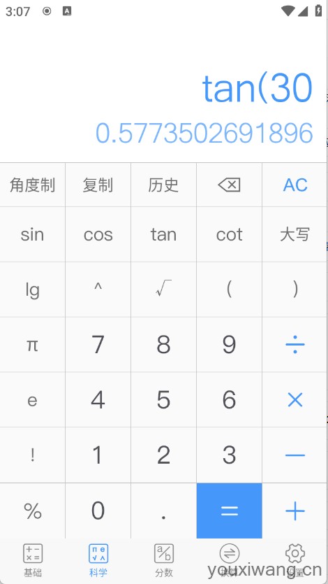 精准计算器,拥有很多的计算工具,支持分数计算、单位换算以及函数计算等类型都有,简洁的页面设计帮助用户更好的使用,可以自动记录计算历史,随时查看计算历史,满足不同用户的计算需求。
