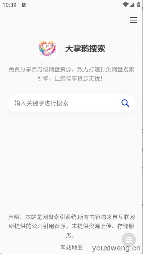 大掌鹅搜索,强大的资源搜索神器,不管是搜索小说、影视以及漫画等资源类型,支持夸克、百度等多种网盘类型,所有的资源都是免费的,资源搜索速度快且资源齐全,快速找到自己需要的资源内容。