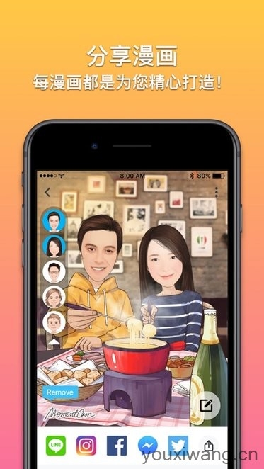 2、一拍生成你的私人漫画形象,百变造型玩转社交平台。