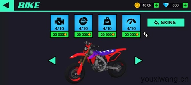 1、丰富多样的摩托车可以去解锁使用,每一辆都有着独特的外观和专属的性能,驾驶起来的体验也会各不相同。