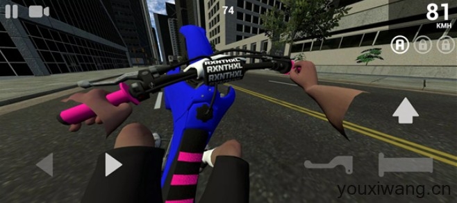 4、在翘起车头的期间,点击右上角的按钮即可做出各种特技动作。