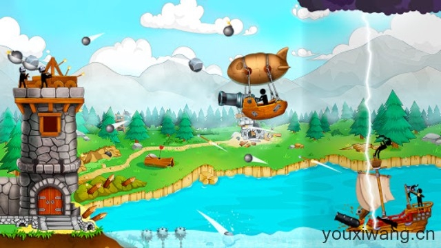1、控制好你的火柴人,瞄准敌人然后发射炮弹,将敌人全部消灭,保卫自己的城堡不被入侵,完成任务收获丰厚奖励。