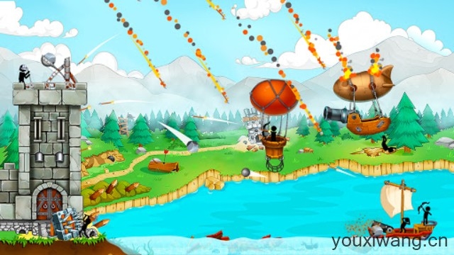 弹射海盗,以火柴人为主角的休闲闯关类手游。游戏中,我们将会控制自己的火柴人士兵守卫城堡,面对不断来袭的海盗船、飞艇等敌人,通过投掷城堡上的投石器去攻击敌人,击败所有敌人即可过关获得奖励。通过不断的闯关来积累资源,解锁更多新的道具,帮助你去战胜更多不同类型的敌人!除此之外,游戏内还有各种火柴人、炸弹、技能等元素可以使用,帮助你在关卡中大杀四方,闯过更多的关卡!