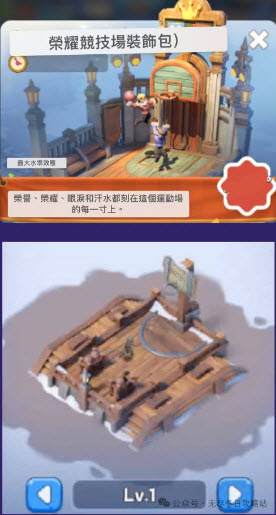 1)这个就是海岛的竞技场建筑装饰礼包;不出意外应该是活动第二天开启装饰礼包。